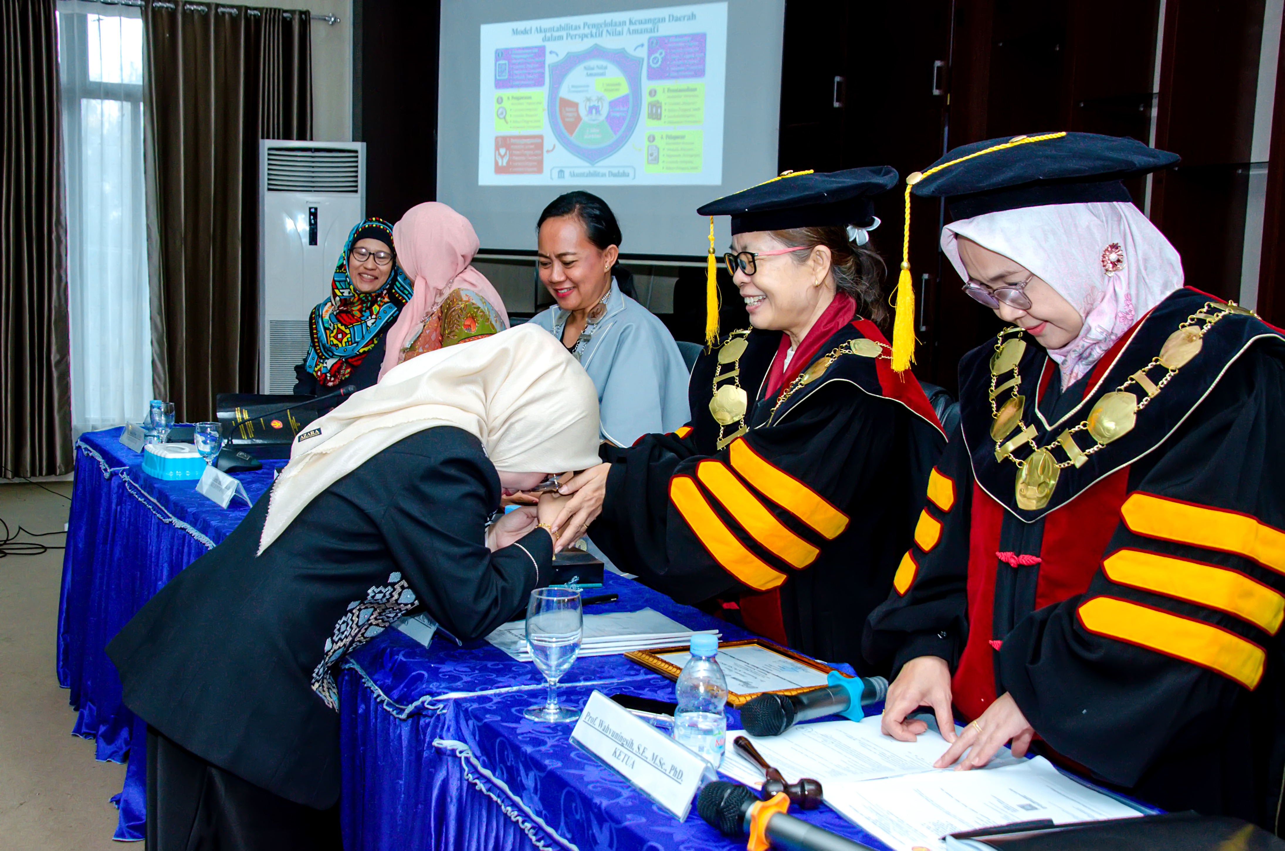 Disertasi yang diangkat oleh Dr. Nurjanah Suleman berjudul “Akuntabilitas Pengelolaan Keuangan Daerah dalam Perspektif Nilai Amanati.” Kajian ini dinilai relevan dengan kebutuhan penguatan tata kelola keuangan publik yang akuntabel dan berbasis nilai khususnya di wilayah Gorontalo Utara.